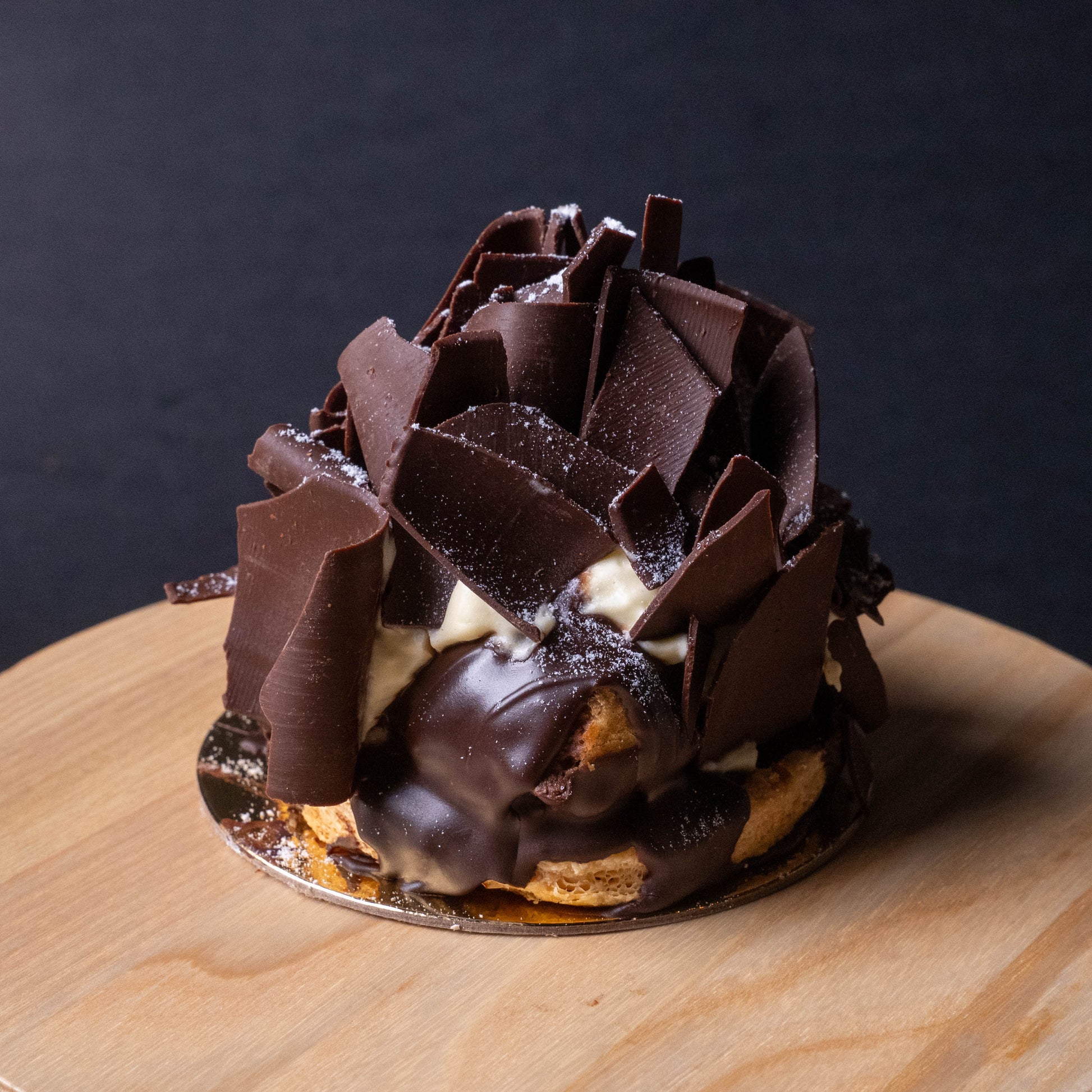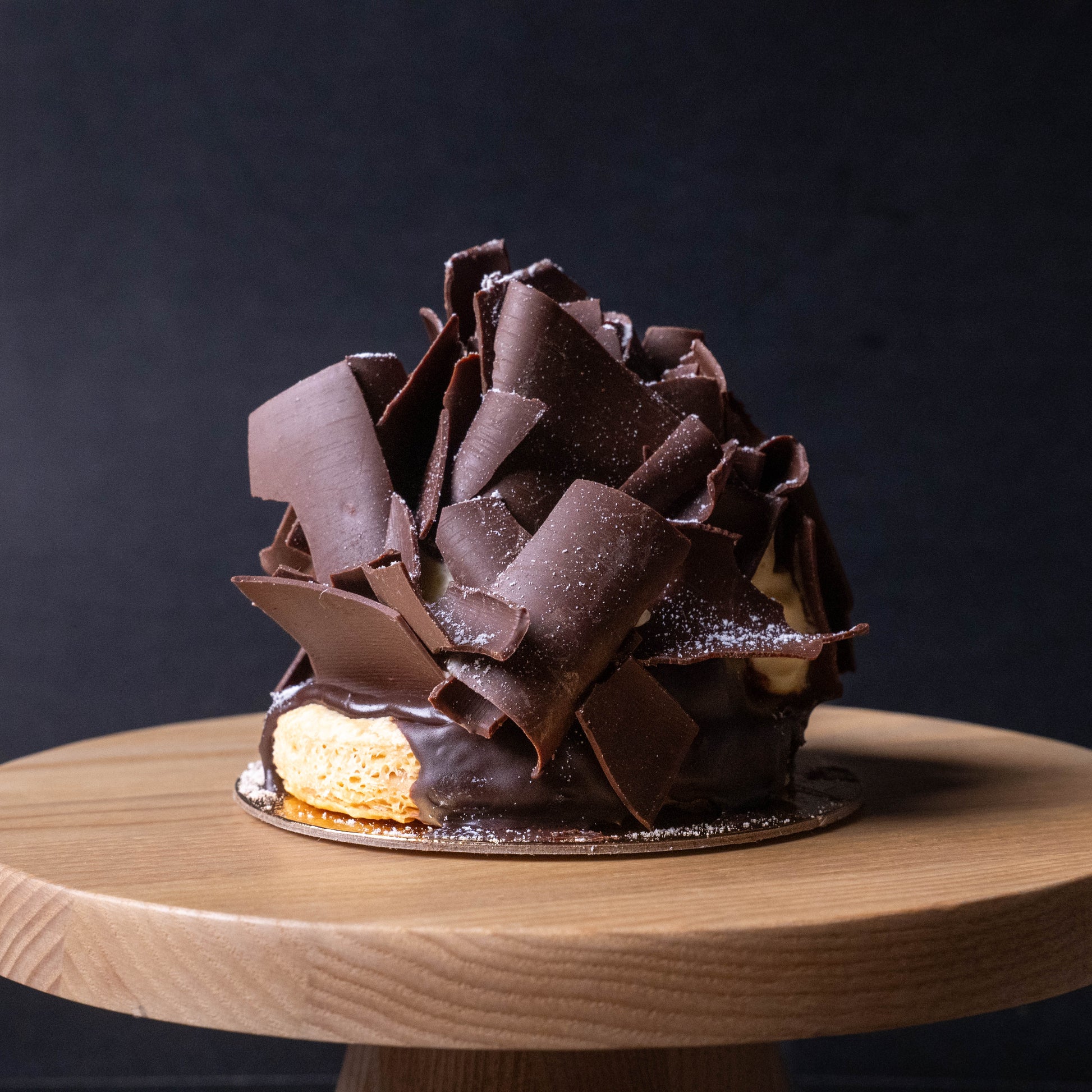 Indulge in St. Honore, a delicious pastry filled with vanilla pastry cream & chocolate mousse, drizzled with dark chocolate. Its golden puff pastry and choux balls will satisfy your taste buds. Choose from an individual serving or a full cake for your next sweet treat.